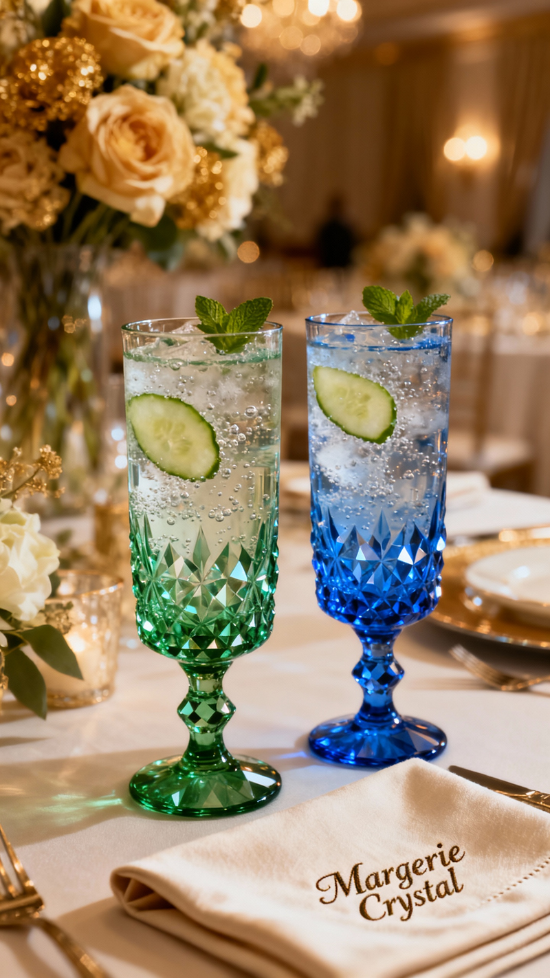 Renkli kristalin büyüleyici ışıltısını sofralarınıza taşıyan Gloria Serisi, zarif kesimleri ve göz alıcı renk seçenekleriyle şıklığı yeniden tanımlıyor. Sofralarınızı sanata dönüştüren bu koleksiyon, cam ustalığının en rafine örneklerinden biri.